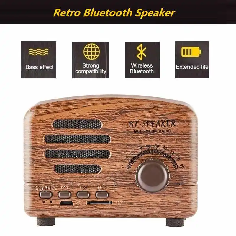 Check Price Retro Bluetooth Speaker Portable Mini Speakers Support Tf Card Playing Fm Radio Hands-Free For Phon Flash Deal only pay US $8.80 Free Shipping!